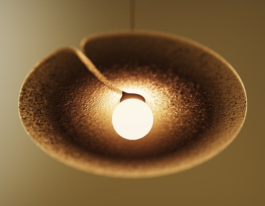 Highlighting one of the most innovative bio-based composites developed in the last decade, mycelium proves to be an ideal choice for integration into pendant lamps. Not only does mycelium allow for the creation of highly intricate surfaces without the need for post-processing, but it also exhibits the remarkable ability to grow in desired shapes and colors.