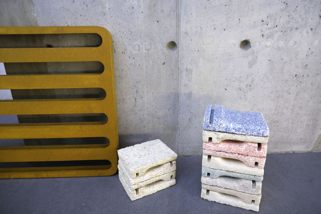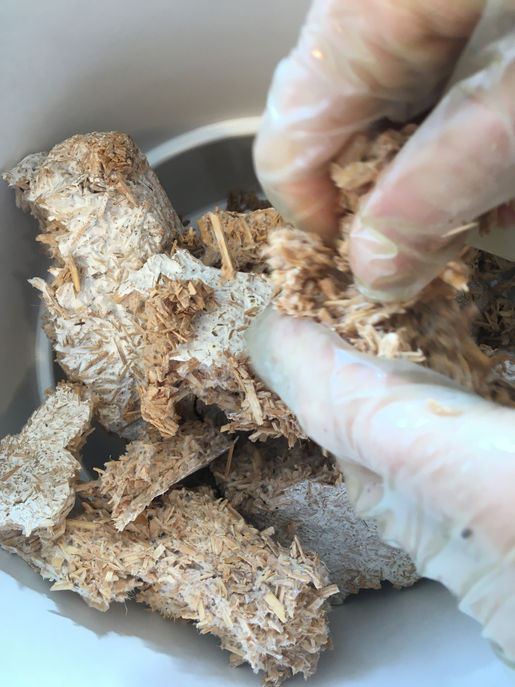 This material offers significant advantages, similar to conventional composite materials. It allows for the adjustment of properties to meet specific design requirements and minimizes the need for extensive post-processing. In the mycelium growing process, it's worth noting that the mycelium plays a key role in binding the substrate and water, contributing to the material's structural integrity. The final touch is the addition of pigment, not only for color but also to avoid the expense of a separate and costly color coating. This approach gives us a multi-sensorial material.